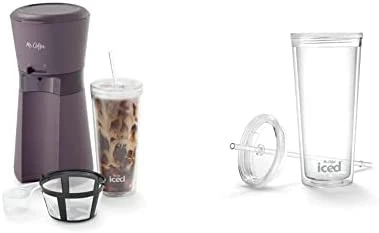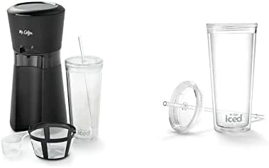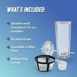- REUSABLE TUMBLER AND COFFEE FILTER: Double-wall insulated, BPA-free tumbler keeps iced coffee colder longer and reduces sweating, plus includes a lid and straw (tumbler is hand-wash only); also includes a reusable nylon coffee filter, so there’s no need for paper filters