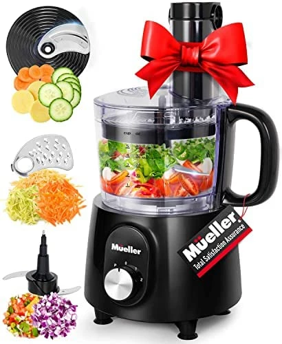 - Try New Recipes โ Mueller Food Processors inspire you to experiment with new and exciting recipes. Use the electric chopper with fruits, nuts, and herbs or use as a meat chopper or vegetable chopper. Prep your meat and veggies ready to add straight into soups, pies, and casseroles or for delicious pasta sauces.
