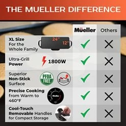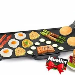 I’ve only used this once so far, but it did a fantastic job. Points of interest: 1) SUPER easy to assemble out of the box, no tools required 2) as warned in the instructions it does have a bit of smell the first time even though I washed it first – this did not affect taste 3) I was really surprised with the temperature control. I didn’t think it was going to be very good since it’s just 1-5 instead of Low-Medium-High or actual temperatures buy let me tell you: it heats up to ready temp quickly, and cools down to new temp quickly as well when you reduce heat. IMPRESSIVE 4) really easy to clean too, wipes clean easily even without soap and water (though I used it after anyway). I cooked up a mess of scrambled eggs and it’s wierd – they tried to stick a bit but then came off easily too. This is probably because the griddle surface I textured instead of glass-smooth. There are 2 small flaws in the cook surface, like some debris got on there when it was dipped or sprayed but it didn’t affect anything. So far I’m pleased with the appliance