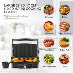 - XL Nonstick Coated Cooking Plate – An easy removal makes adjusting the plate a piece of cake for your cooking needs. Because the Griddle features a non-stick finish, food may be prepared with little or no oil. Meat or fish, it doesn’t stick and the Oil Drip Tray catches all the grease from cooking. Perfect for a low-fat diet!