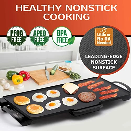 I specifically bought this for a themed birthday party. I also had plans for using in to make pancakes on a regular basis.I bought this model based on the size — I wanted a large even-cooking surface. This was one of the largestModels I could find. It also had convenient storage and washing features.I liked that the handles and oil collection tray are dishwasher safe. This saves me time because the griddle itself is hand wash only.We have cooked pancakes, thin sliced beef, chicken, shrimp, and a multitude of vegetables on this griddle. It cooked very evenly and heats quickly. I find that it does maintain even heat when adding colder items.I do wish it came with a storage container or bag. I’m currently storing it in the original box. I feel like this would be better protection for the cook surface.