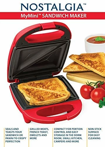 Outlet β MyMini Nostalgia Mini Sandwich Maker Toaster Compact For Portion Control Seals And Toasts Sandwich Panini Maker (RED) π