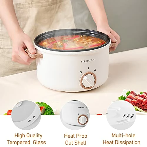 - γHeat Safety Sensorγ: Naibsan electric hot pot uses circular embedded heating technology to heat your food evenly. With overheating protection functions, it will keep you safe from any excessive heat that can lead to accidental burns or fires.