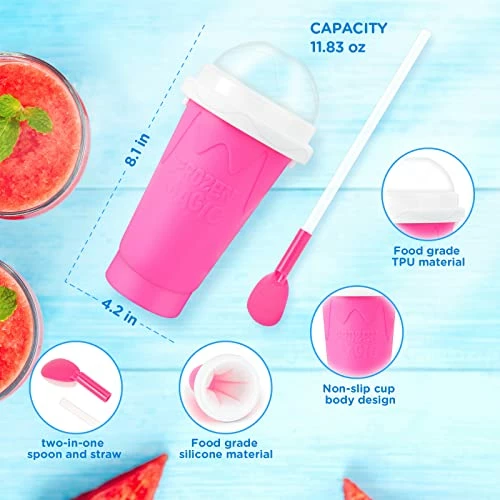 - 【Freeze, Squeeze, Enjoy】Just put this slushy maker cup in the freezer layer for 4-5 hours until the built-in freezing liquid freezes into a solid, then pour in any beverage you like (Coke, milk, juice, soda, etc.), shake for two minutes, and enjoy tasty!
