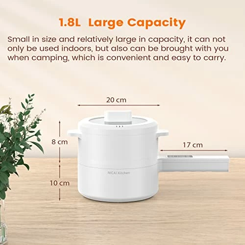 - ?γPortable&Easy to storageγ 1.8L electric cooker has a mini size for easy to store and portable, suitable for 1-3 people,without handle: 2.6×7.7in,handle 5.8in.The electric pot is suitable for small rooms without kitchens such as studios, offices, and dormitories, which help you to store. It is suitable for you when traveling and picnics with your family or friends.