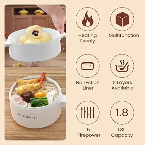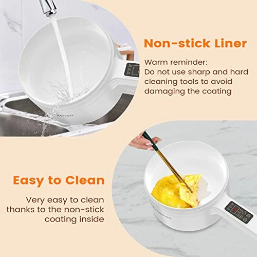 - ?γHealthy Non-Stick Coating γ Electric ramen cooker surface is made of food-grade nonstick coating which has the features to provide an effortless release and easy cleaning. You can sautΓ© your foods smoothly on the pan to prevent sticking and cook foods at a low level of fat and oil to make your foods healthier.