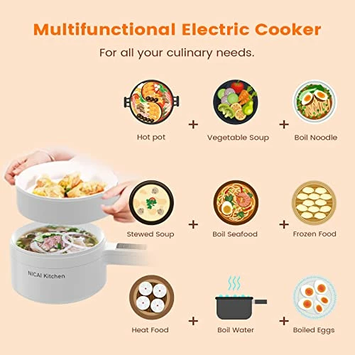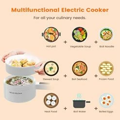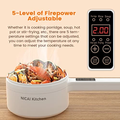 - ?γMulti-Function Electric Hot Potγ Five gears can be adjusted to meet any of your cooking needs.With function keys porridge, rice, soup, hot pot, frying that you can make spaghetti, ramen, pancake,eggs,besides,when cooking steak,soup or hot pot,This portable cooker suitable for a variety of cooking methods, perfect to meet your various needs.It is an indispensable appliance for your kitchen, apartment, hotel, RV, dormitory!