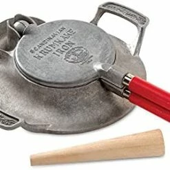 Family members have two types of electric krumkake irons, but they don’t make the thin enough. With this you can squeeze the handles and make then thinner. Easier to clean than electric also. My granddaughter wanted one like mine – the old fashioned kiind. The only drawback is that on an electric stove you will get occasional flare-ups form dripping butter if not careful. On gas you don’t notice it, becasue ti drips into the flames. Wont work on induction stove top.