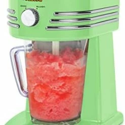 It makes great slushies while being easy to use and clean. It is however very loud when being operated and does require you to stop the machine and move some of the ice around that likes to get stuck. I used it with snappy brand slushy syrup on Amazon and works great together