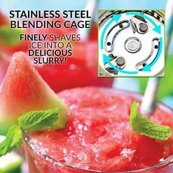 - STAINLESS STEEL BLENDING CAGE: Patented stainless-steel blending cage combined with a powerful motor; this frozen drink machine finely shaves beverage into a delicious slurry with no large chucks like regular blenders can leave behind