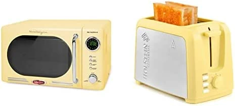 Would have given this 5 stars if only the red matched the red on their coffee pot. Alas, because it is made in a different plant, it is NOT the same red. Standing alone, it’s a great color. Putting it beside existing Nostalgia red coffee pot, it doesn’t look great. Returning it for that reason alone. Everything else about it was great.Great looking, EASY to use, love the spin wheel to start time. Cool images of foods you want to warm up that you can click the wheel to. Probably really easier to use than most microwaves. I was a little worried that the lower wattage might not cut it, but I didn’t even notice. Fast warm up times. Still large enough inside to put a normal size dinner plate.Would totally buy it again if the red matched the coffee pot.