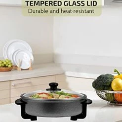 - Convenient and Safe โ Cooking using Electric Portable Skillet is made easy with its glass cover handle and cool-touch handles that secure grip and protect hands from heat or injuries.