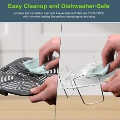 - HEALTHY FRIED FOOD & EASY CLEANUP – Brio uses super-heated air and an efficient air-flow design to cook crispy delicious fried foods without the guilt. No more messy oil, added fats, or calories. Brio allows you to air fry all your favorites – even from frozen, without defrosting. The ultra-non-stick air circulation riser is great for grilling and air frying. The premium stainless steel reversible rack allows for multi-layer cooking. All are dishwasher safe, and the cleanup is a breeze.