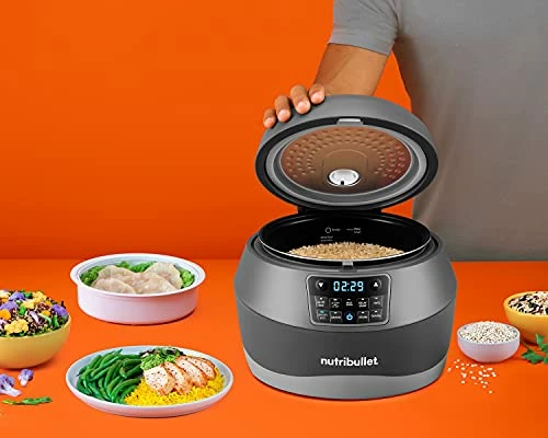 - Whatβs Included The NutriBullet EveryGrain Cooker comes with (1) 600W Cooker Base, (1) 10-cup non-stick Cooking Pot, (1) Steaming Basket (1) Rice Spoon (1) Measuring Scoop, and (1) User & Recipe Guide