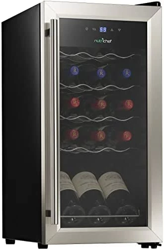 - ADJUSTABLE TEMPERATURE: Nutrichef wine cooler small wine refrigerator features a built-in compressor cooling technology w/ adjustable temperature setting of 41-64Β° degrees Fahrenheit (5 – 18Β°C) so you can precisely set the temp level to your liking