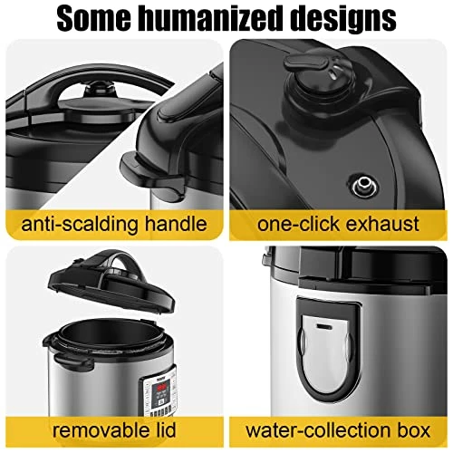The booklet provided with the 8-qt digital cooker could be more informative. It does not tell one how to remove the inner lid, nor are there any instructions on use as a slow cooker or rice steamer.