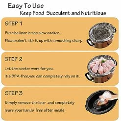 - Durable and Convenient : Use our slow cooker liners to cook any food you like, include chicken, fish, soup, dessert and stew. Throw it directly into the trash after using. Shorten your cleaning time, keep the pot clean and extend the service life of the cookware.