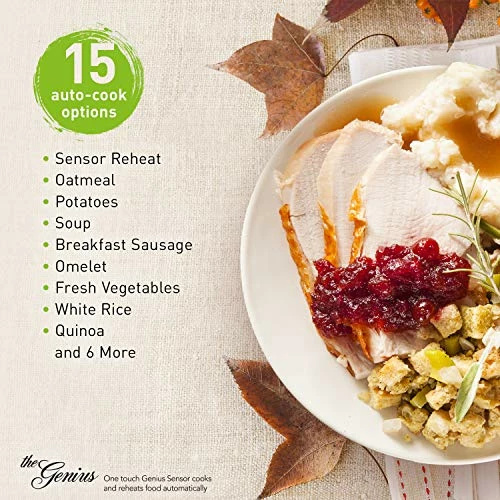 - Smart cooking settings with genius sensor automatically adjusts power and times to take the guesswork out of everyday cooking; includes 16 sensor cook settings; Sensor reheat warms evenly to retain nutrients and texture in leftovers