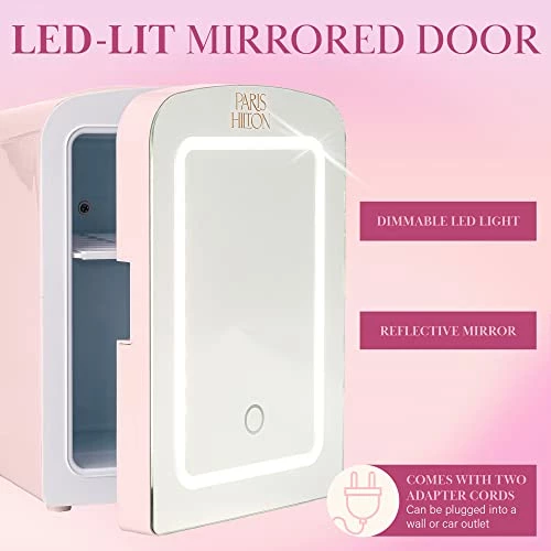 I never thought Paris Hilton would come up with a mini fridge and oh my goodness itβs so cute. I love that it has a mirror on the front with LED lights. It works great and itβs beautiful where I can put all my lotions and facemasks. I definitely recommend it to anyone.