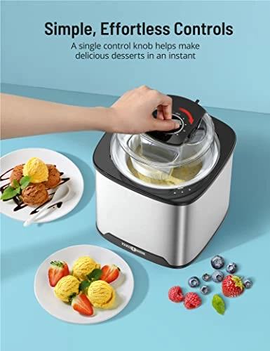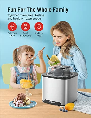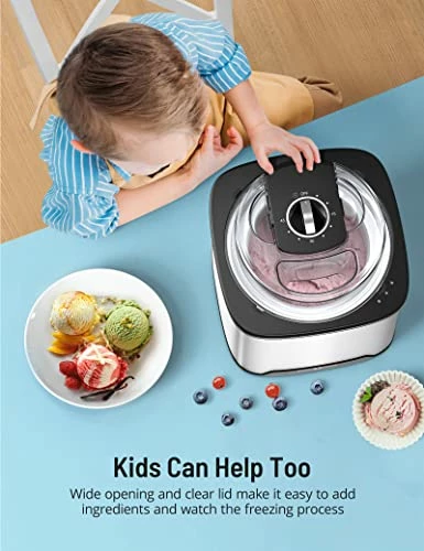 - ?Make and Eat 30 Scoops: With a spacious 2.1QT capacity and an accessory set including a scoop, spatula and measuring cup, create up to 30 scoops of delicious homemade ice cream. Comes with a 12-month warranty for peace of mind
