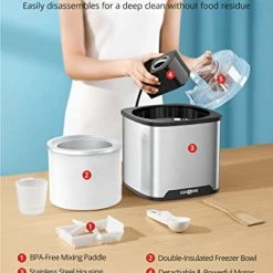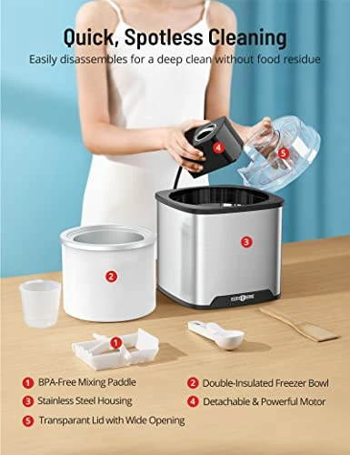 - ?Quick & Simple Cleaning: No one likes to struggle to clean, which is why this ice cream maker is easily disassembled for cleaning. By being able to clean each individual part, you can ensure no food residue remains (Note: this product is not dishwasher-safe. Please wipe interior with a clean cloth)