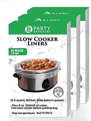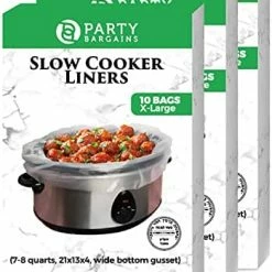 - ✅ HEAVY-DUTY CROCKPOT LINER: Party Bargains heavy duty slow cooker bags are made from superior quality, heavyweight HDPE 26.5 micron. Measuring 21 x 4 x 13 inches (Wide gusset) Up to 7 to 8 quart capacity. Fit round and oval slow cookers.