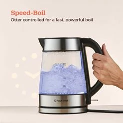 - Fast-Boil – Water rushes to a boil in instants, a blue light majestically illuminating the electric water kettle to let you know itโs boiling. 1,500 watts of power and an OTTER controller provide an even faster and more powerful boil.