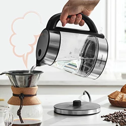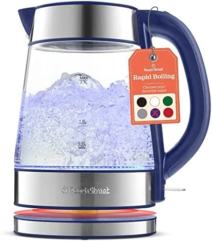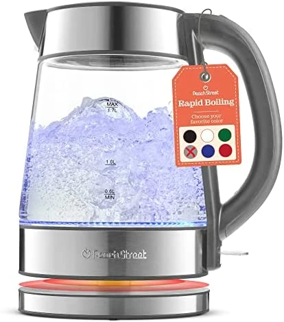 - Electric Superior Kettle for Boiling water 1500W Speed-Boil Tea Kettle with Auto Shutoff and Boil-Dry Protection Borosilicate Glass with LED light and concealed heating element 1.7 Liter