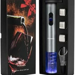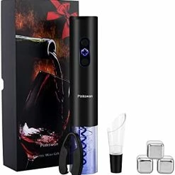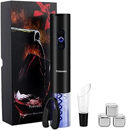 - ใMany Tools Than Others In Setใ4-in-1 Electric wine opener set comes with complete tools in small gift box package: one cordless electric wine opener, one wine pourer, one foil cutter, three stainless steel ice cubes. All accessories you need are in one package. It helps you save a lot of money and time.