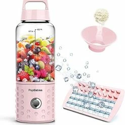 I have a freaking Vitamix that I canโt use cause it trips the box in my crappy apt. ?Lotta informative reviews here.I just mainly wish I didnโt need the funnel/spout to add a scoop of meal shake powder cause that stuff adheres to whatever it touches, so this naturally creates waste as there is good bit of powder that just has to be rinsed away.I also donโt have enough space in my freezer for ice cubes, so I love being able to use this teeny tray for either a smoothie or in a semi-cold glass of tea!If I put powder in first, I get some clumping below the bladesโฆ. Mostly comes out if you add a bit of water and blend (I then also drink that)If I put liquid in first, then powder, I get a little powder clumped on sides of jar. So have to scrape that and also add water/blend. So I prob would choose liquid first, but itโs almost a six/half-dozen issue, though either way is pretty simple if you donโt get something major stuck under blades.You could also blend water and dish soap to clean without bottle brush.I also agree to have enough liquid/proper liquid-to-solid ratio so as to not inhibit blades and other contents from spinning/blending freely. Hence, why you start it upside down and move it around.Once lid is on tight, no drips or leakage.And itโs not very loud at all. Just what youโd expect.If I use unsweetened almond milk + powder, I get a creamy, milkshake- consistency drink, no grit. I canโt get that with a spoon or shaking a bottle.I do feel like the charger-hole-cover might fall off before too long. This is an issue with any rechargeable, water-resistant kind of gadgetโฆโฆ like my earbuds.But overall, for what this is, and for how portable it is (like if you have many food allergies and canโt guarantee finding something tolerable while traveling, but can tolerate a few powders), or if you just plain have no space – this thing is awesome!I might even try putting cooked veggies in with some coconut milk for times when my digestive system might prefer already-broken-down substances, and I donโt have an outlet for my pressure cooker and my immersion blender. (Which is a combo you just cannot beat with a stick)But whenever you donโt have an outlet handy or a big job, this is perfect!
