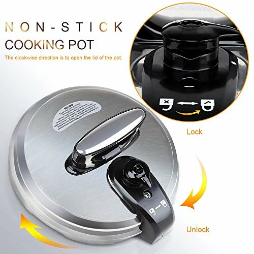 - 6QT Non-Stick Cooking Pot : Removable cooking pot is made from food grade 304 stainless steel, chemical-free non-stick coating, no need to worry about health. The gasket creates a fully sealed environment that captures the flavour, nutrients and aromas of the food. Suitable for a family of 4 to 6.