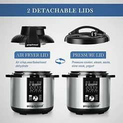 - ใ7 Cooking ModesใPressure Cooking, Air Frying, Slow Cooking, Saute, Steaming, Yogurt, and Warming, raises your cooking to next level โ convenient, time saving, and space-saving.
