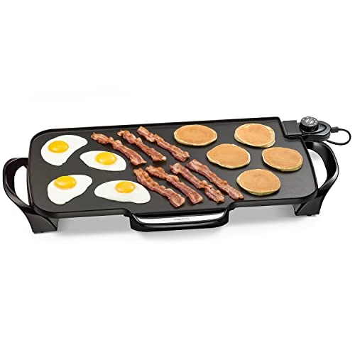 This is my third electric griddle, and by far the best one. Great value for the price, half what others cost. It works perfectly, completely nonstick, I donβt have to grease the griddle at all for pancakes and most other foods. Lightweight, and so easy to clean right in the sink. Love it!