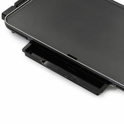 - Extra-large cooking surface makes enough for the entire family. Premium nonstick surface for stick-free cooking and easy cleaning. Slide-out drip tray