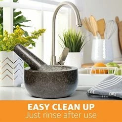- GRIND, BELND and MASH THE FRESHEST FLAVORS: This mortar and pestle set with a generous 2 cup capacity and sturdy 6.5 inch pestle gets the job dine quickly. Crush, grind and pound herbs, nuts, spices and more to release natural flavors and aromas easily with minimum fuss.