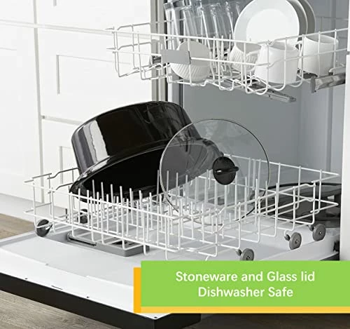 - Easy to Clean: This slow cooker has a removable stoneware pot and glass lid that are dishwasher safe and easy to clean.