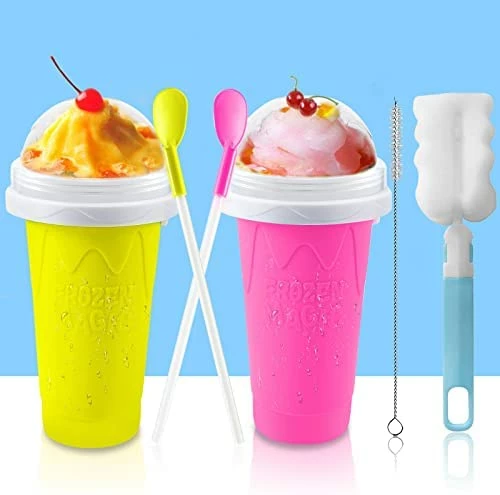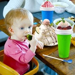 - (Convenient Reusable): The Magic Slushy Cup is machine-washable,simply wash it with soap and refreeze, then itβs ready to use again.Spoon connected to the straw can be used as a spoon or as a straw.
