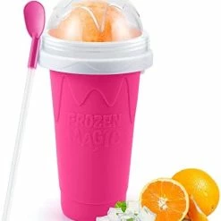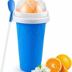 - ? [Instant Freeze Technology] Built-in freezing liquid, transform your favorite sugary drinks (such as cola and juice) into fresh slush in just a few minutes. The built-in freezing liquid and ingredients are exchanged for heat and cold to make it safe and hygienic. It will not lead to dilution of the original flavor because it not use a mixture of ice and juice to achieve a semi-frozen consistency.