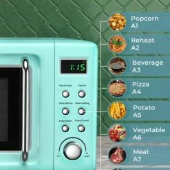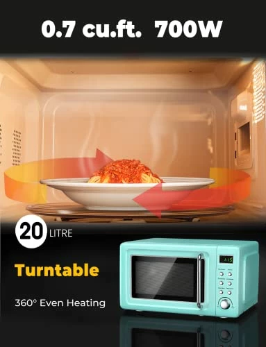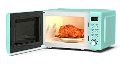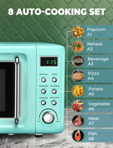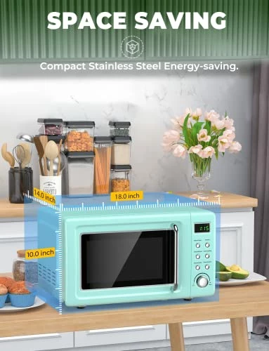 - USER-FRIENDLY DESIGN: Equipped with interior light, time/weight knob, dials and door knob, this retro-looking microwave is designed to bring your life simplicity and convenience.