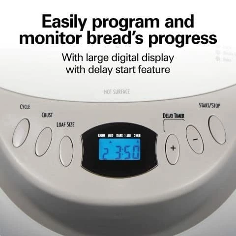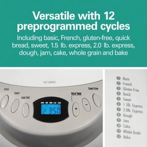 - Bread Maker Machine, Digital, Programmable, 12 Settings + Gluten Free, Dishwasher Safe Pan + Kneading Paddle, 2 lb Capacity