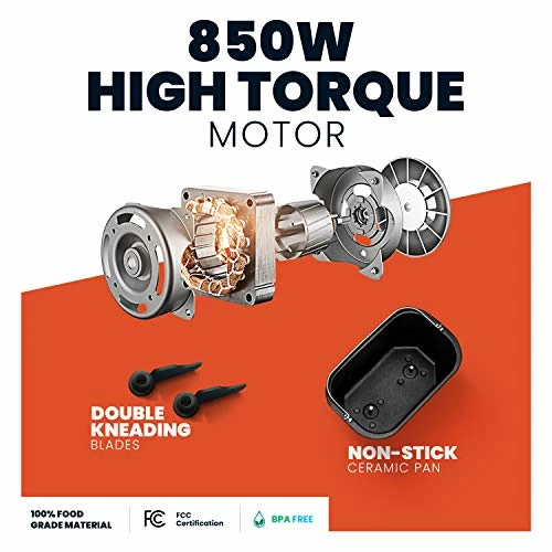 Powerful motor doesn’t seem to strain at all like the smaller bread maker we returned. Double paddle design does a better job mixing than single paddle. High quality at a reasonable price. Warranty service is very responsive. We had a problem with one of the paddle rotors freezing up and not turning after about 18 months ownership. The customer support rep Yucel T. was very professional and helpful and in a few days the new pan arrived. Quality at a good price with excellent support is hard to beat!