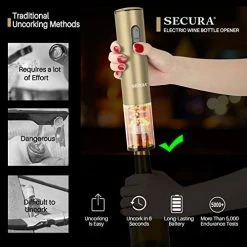 - Rechargeable Electric Wine Bottle Opener – Easily remove corks in seconds. Compatible with most wine bottle sizes. Open up to 30 bottles on a single charge.