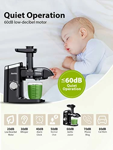 - ?【Upgraded Auger & Quiet Operation】-The upgraded auger of the Aeitto Juicer Machines can better increase juicer yield, and the juice can retain more abundant nutrients and reduce oxidation.The motor operates less than 60 decibels.It stop automatically for every 20 minutes’ operation.