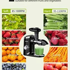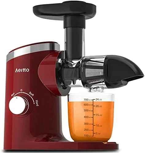 - ?【2-Speed Modes】-This Aeitto slow masticating juicer with 2-speed modes can extract various vegetables and fruits.★“SOFE MODE(85-100RPM)”:orange, watermelon,grape,berryetc.★“HARD MODE(95-110RPM)”:apple, pear,carrot,beets,celery,ginger, kale etc.It will better extract high-purity juice and reduce the rate of oxidation.