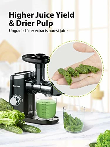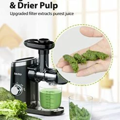 - ?【Juice & Pulp Separation and Reverse Function】-Perfectly separates the pomace from the juice,provide purest juice and vitamins for you and your family!Also,Juice Extractor Machines has reverse function to avoid stuck.You can enjoy delicious juice more easily.Aeitto Cold Press Juicer provides you with a safer and quieter juice extraction environment.
