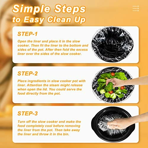 - Suitable for Multiple Food: After many burning tests, the plastic cooking bags will not be ignited, which can ensure safety during use. Use our slow cooker liner to cook meats, poultry, fish, desserts, breakfast, chili, soups, stews, appetizers, dips. If you have any questions after receive it, please feel free to contact us at any time!