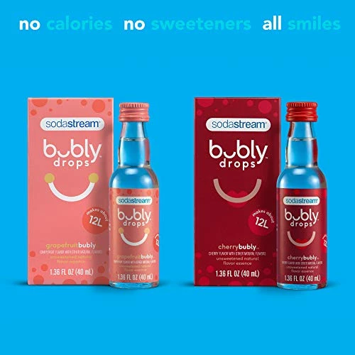 - Includes: Jet sparkling water maker, (2) 60L Co2 cylinders, (3) 1 liter carbonating bottles, and (2) bubly drops 40ml flavors
