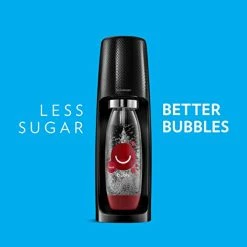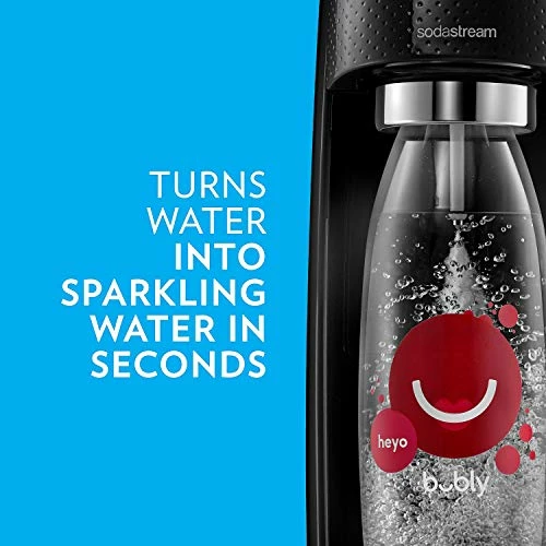 - Includes: sparkling water maker, 60L Co2 cylinder, 1 liter BPA-free reusable carbonating bottle, and cherry flavored bubly drops flavoring