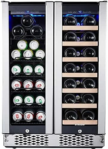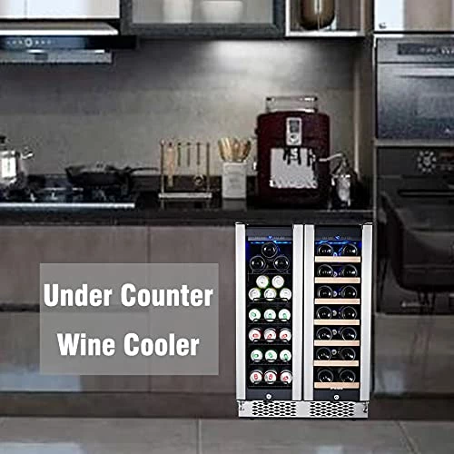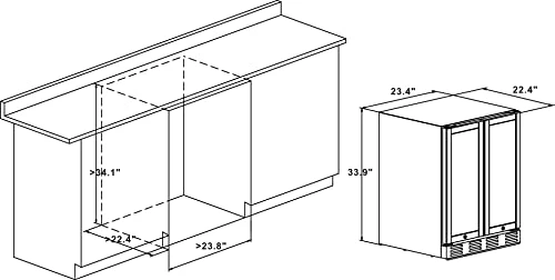 - ✅ LOW-NOISE, ENERGY-SAVING 2-in-1 WINE COOLER will not disturb you or your guests. The lower noise will allow your wine to breathe evenly while the stainless steel design and compact size (22.4″ x 23.4″ x 33.9″) make it ideal for under counter spaces.