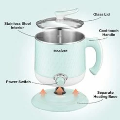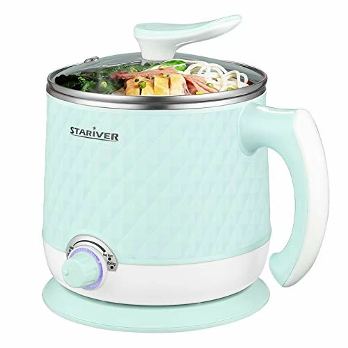 - โ [Distinctive Style] – The delicate appearance of electric cooker, featuring the pattern of diamond with green, brings you an elegant vision and a more comfortable touch. 1.8L capacity electric ramen cooker is enough for people to make a good meal for oneself or share more tasty food and happiness with others.